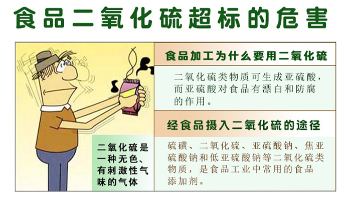 二氧化硫是國(guó)內(nèi)外允許使用的一種食品添加劑,通常情況下該物質(zhì)以焦亞硫酸鉀、焦亞硫酸鈉、亞硫酸鈉、亞硫酸氫鈉、低亞硫酸鈉等亞硫酸鹽的形式添加于食品中,或采用硫磺熏蒸的方式用于食品處理,發(fā)揮護(hù)色、防腐、漂白和抗氧化的作用。